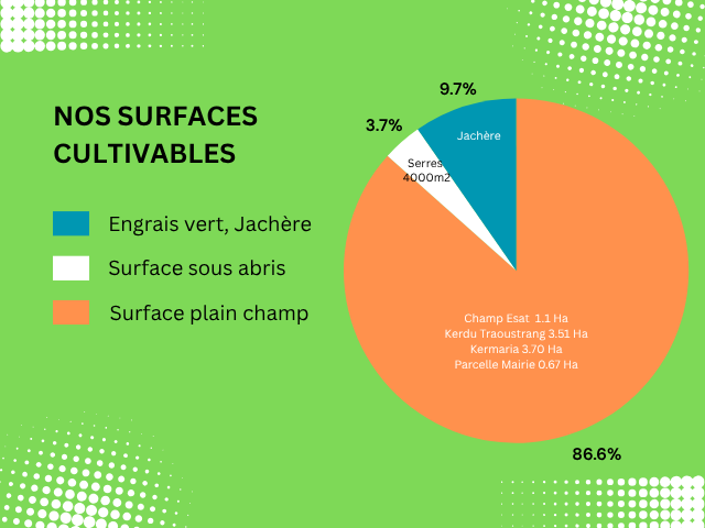 Chaque année, le Jardin de Paimpol cultive plus de 50 variétés de légumes et fruits certifiés Ecocert sur 8.6 hectares dont 4000 m² de serres. Vente directe et paniers distribués sur 4 sites répartis sur 30 km autour de Plourivo sont les principales activités. En fonction de nos quantités disponibles, nous approvisionnons également des professionnels de la restauration, une cantine scolaire à Plourivo, notre cuisine à l'Esat et des magasins locaux engagés dans le Bio, les Biocoop Lunesol de Paimpol et de Tréguier. Environ 1850 paniers ont été réalisés en 2022. Notre concept et nos valeurs séduisent tous types de personnes, jeunes ou moins jeunes, qui souhaitent manger mieux et encourager le bio et le local.